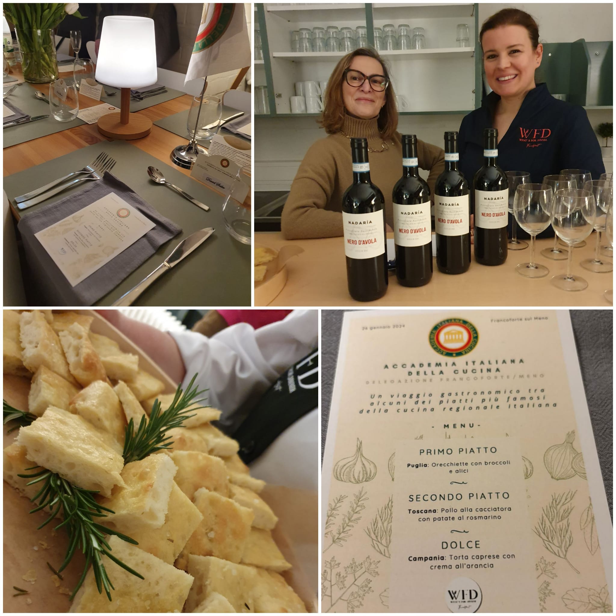 Anno nuovo, vita nuova! Stanchi di andare alla ricerca di un ristorante italiano? Per la conviviale d’inizio anno non siamo stati ospitati da un ristorante bensì ci siamo fatti preparare la cena augurale da una “personal chef”. Ecco la novità! Il personal chef, una figura del nuovo panorama gastronomico, in realtà è sempre esistita. Semplicemente, come tutte le cose, si è evoluta: dal tempo dei cuochi personali delle case aristocratiche o alto borghesi, arruolati in pianta stabile, ai professionisti on demand che arrivano a preparare una singola cena a casa del cliente. Personaggi che cucinano, intrattengono, creano menù personalizzati, ma soprattutto un evento unico realizzato su misura. Le nostre “personal chef” di What’s for Dinner Frankfurt (https://whatsfordinnerffm.com), Cristina Sommella e Alessandra D’Orsi, ci hanno proposto un viaggio gastronomico che dalla Puglia (orecchiette con broccoli al profumo di alici) ci ha condotto in Toscana e Umbria (pollo alla cacciatora) per concludersi poi in Campania (torta caprese): tanti sapori genuini ed autentici!